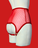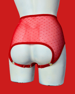 The SABBATH overt knickers in spicy red pin dot mesh